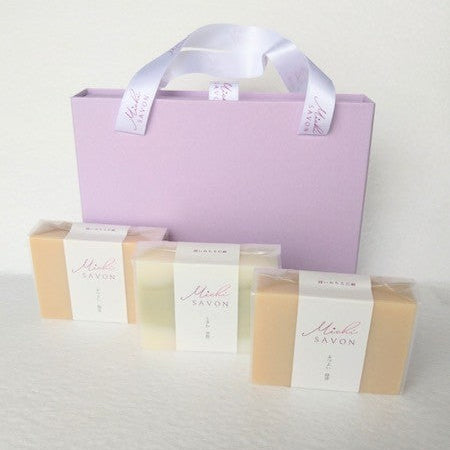 秋限定石鹸「待宵まつよい」2個と「常盤ときわ」1個をセットにしてギフトボックス入りで販売いたします。